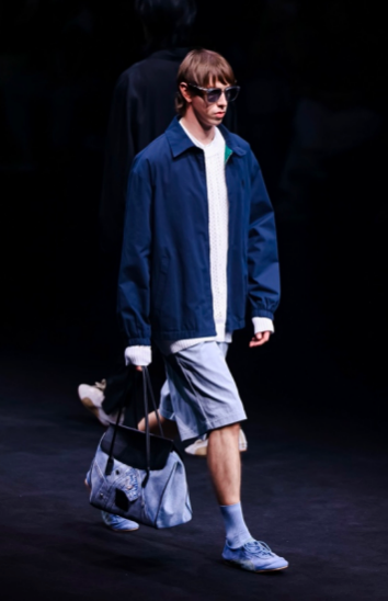本次发布会的主要设计亮点集中在虎鲸精神与东方哲学的融合上,深度结合海洋生物特征、环境责任与时尚表达。材质上,我们选择环保面料,探索致命配件,减少传统化纤面料的使用,传递大自然的恐怖;在廓形的编排上,“鲸鳍切水”的锐利凸显大胆,“海穿鲸鱼”的流畅释放和自由改变了时尚穿搭中的“大胆和自由”适合不同体型、场景的离子语言;视觉符号方面,“积木”、“电池”、“新能源”标识与自然色彩相搭配。在贯彻环保理念的同时,也考虑到日常穿着在多场景下的实用特性,让潮流美学与绿色生态相呼应。