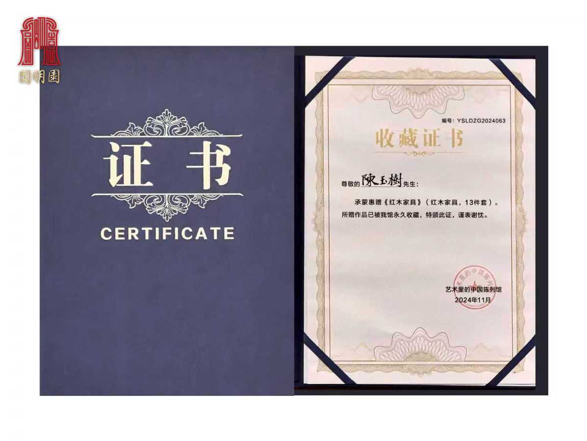 近日,由中国古典家具领军人物、国际知名古典家具艺术家、圆明园基金会理事陈玉树创作的圆明园全球限量版古典家具《天地》正式入馆中国第一美术馆中国展厅。