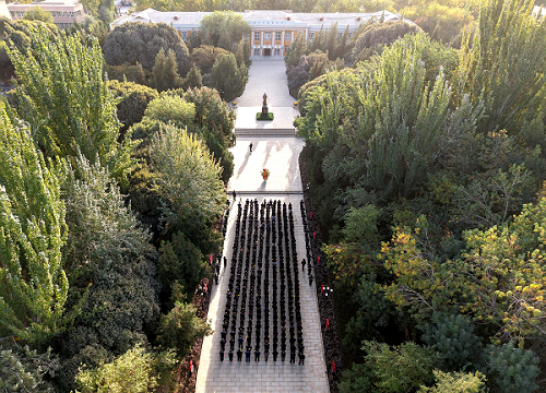 Ang Mga Pinuno ng Paaralan,Mga Kadre ng Antas ng Dewartamento,位于Mag-aaral Ay Lumahok的Mga Guro。仪式是党委员会副秘书兼塔里姆大学校长Yan Xianglin在红文化广场举行。
